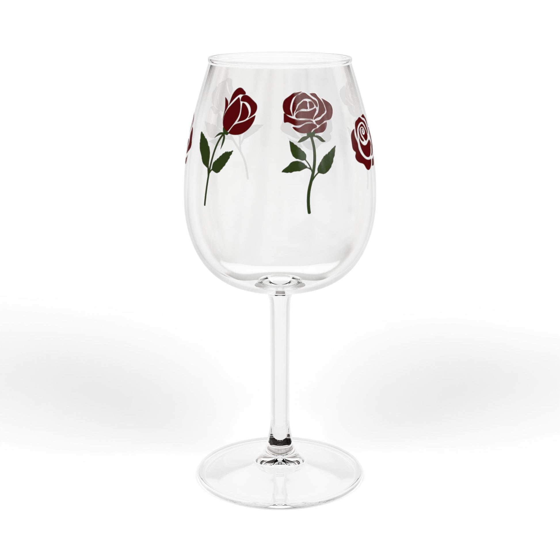 A graceful 12oz wine glass painted with hand-finished roses that bring a quiet, romantic energy to slow evenings and lively gatherings alike. The delicate floral band wraps the bowl so each sip feels considered—wine, conversation, a memory. Lightweight and elegant on the stem, the clear glass and glossy print let the color of your pour shine through while the rich rose tones add a vintage-modern touch. Use it when you want the table to feel a little softer, whether you’re settling in for a cozy night at home or hosting friends for a relaxed dinner.